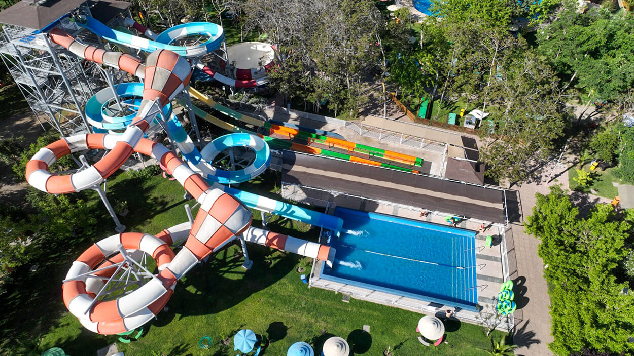 Descubre el parque acuático más completo y divertido de la región metropolitana. Sumérgete en una experiencia inolvidable con nuestros 21 toboganes y 6 piscinas en nuestras 8 hectáreas de áreas verdes equipadas con quinchos, parrillas y mesones. Disfruta de una variedad de servicios y opciones gastronómicas.